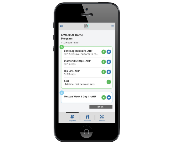 Daily custom online workouts directly to your phone. Each workout comes with exact directions and a tutorial video to demonstrate correct form and technique. No equipment needed, this allows you to work out at home or somewhere else on your own time.